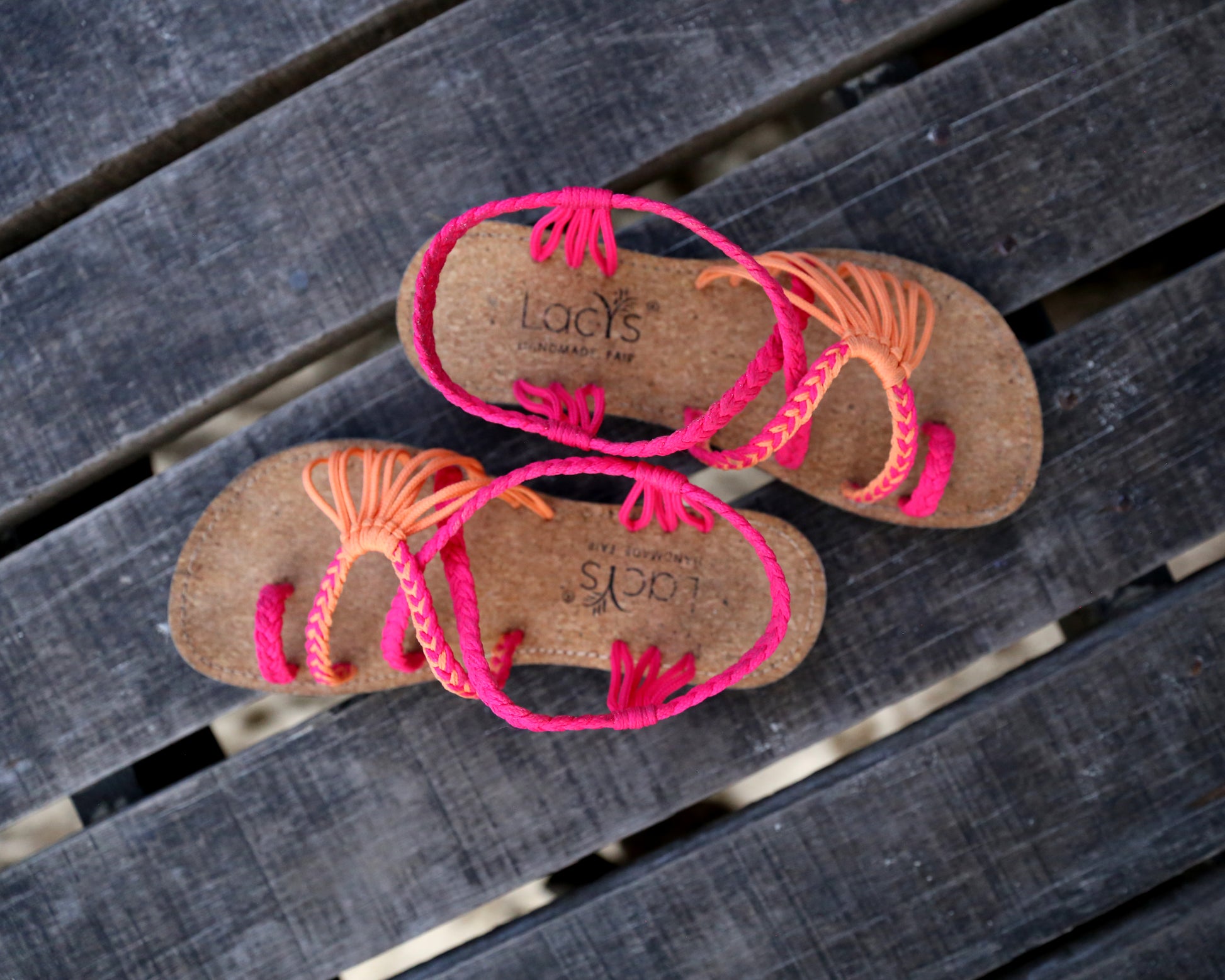 Material: Nylonbänder, Korkobersohle, 100% Kautschuksohle