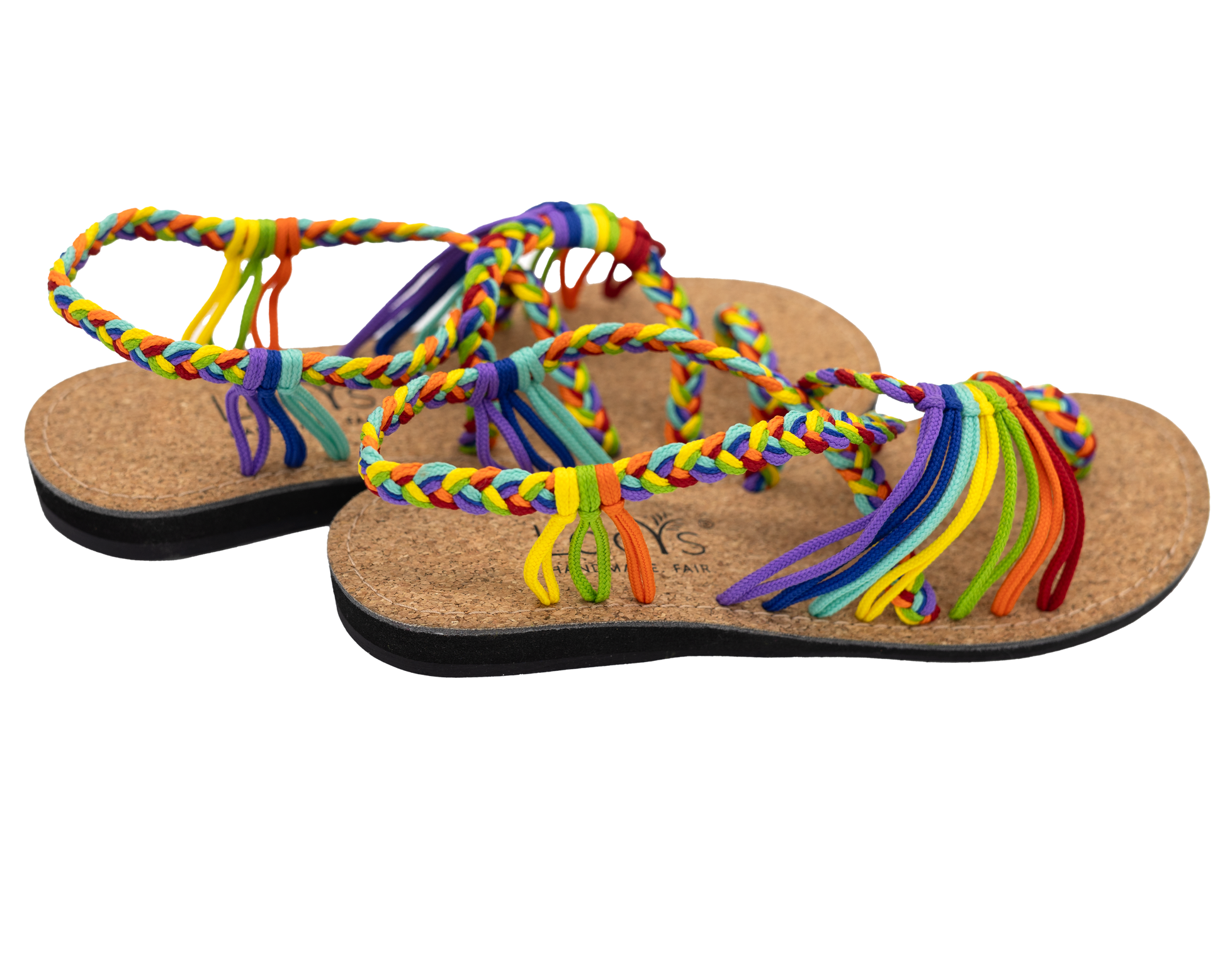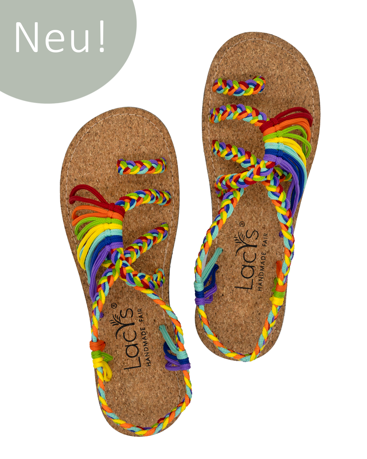 Unsere „Pride“ Sandale ist ein echtes Statement: Leicht, luftig und in leuchtenden Regenbogenfarben zieht sie alle Blicke auf sich.